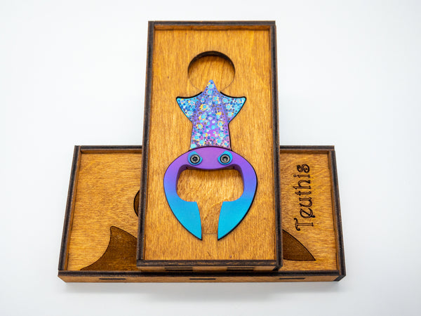 We specialize in Titanium anodizing, Cerakote, forced patinas, laser annealing and engraving. Contact us on how to create a one-of-a-kind piece of pocketable art!